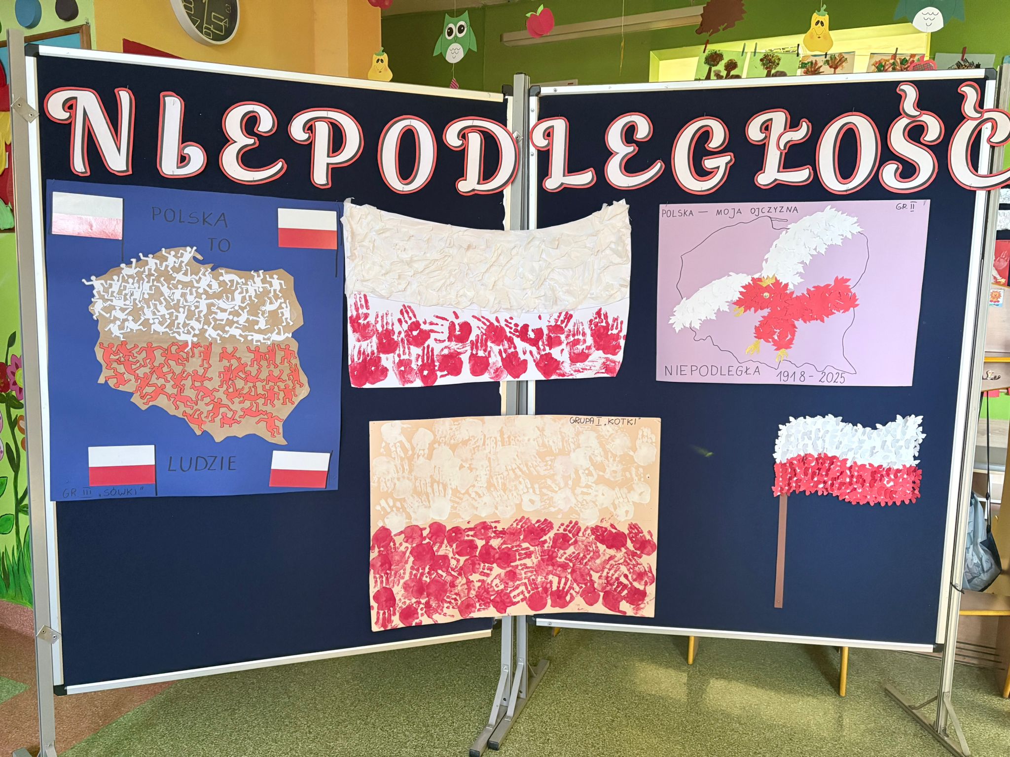 DODATKOWO WSZYSTKIE GRUPY WYKONAŁY FLAGĘ POLSKI WYMYŚLONYM PRZEZ SIEBIE SPOSOBEM NA WYSTAWĘ,