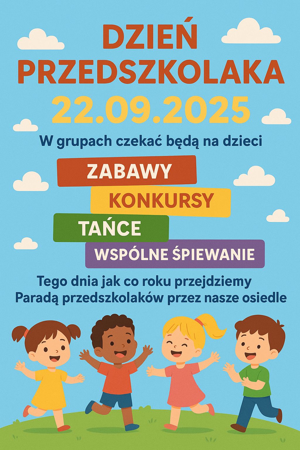 Dzień Przedszkolaka jest świętowany w Polsce 20 września i ma na celu podkreślenie znaczenia edukacji przedszkolnej oraz prawa dzieci do radosnego dzieciństwa i zabawy. W tym roku swięto przypada w sobotę dlatego MY świętować będziemyw PONIEDZIAŁEK 22.09.2025