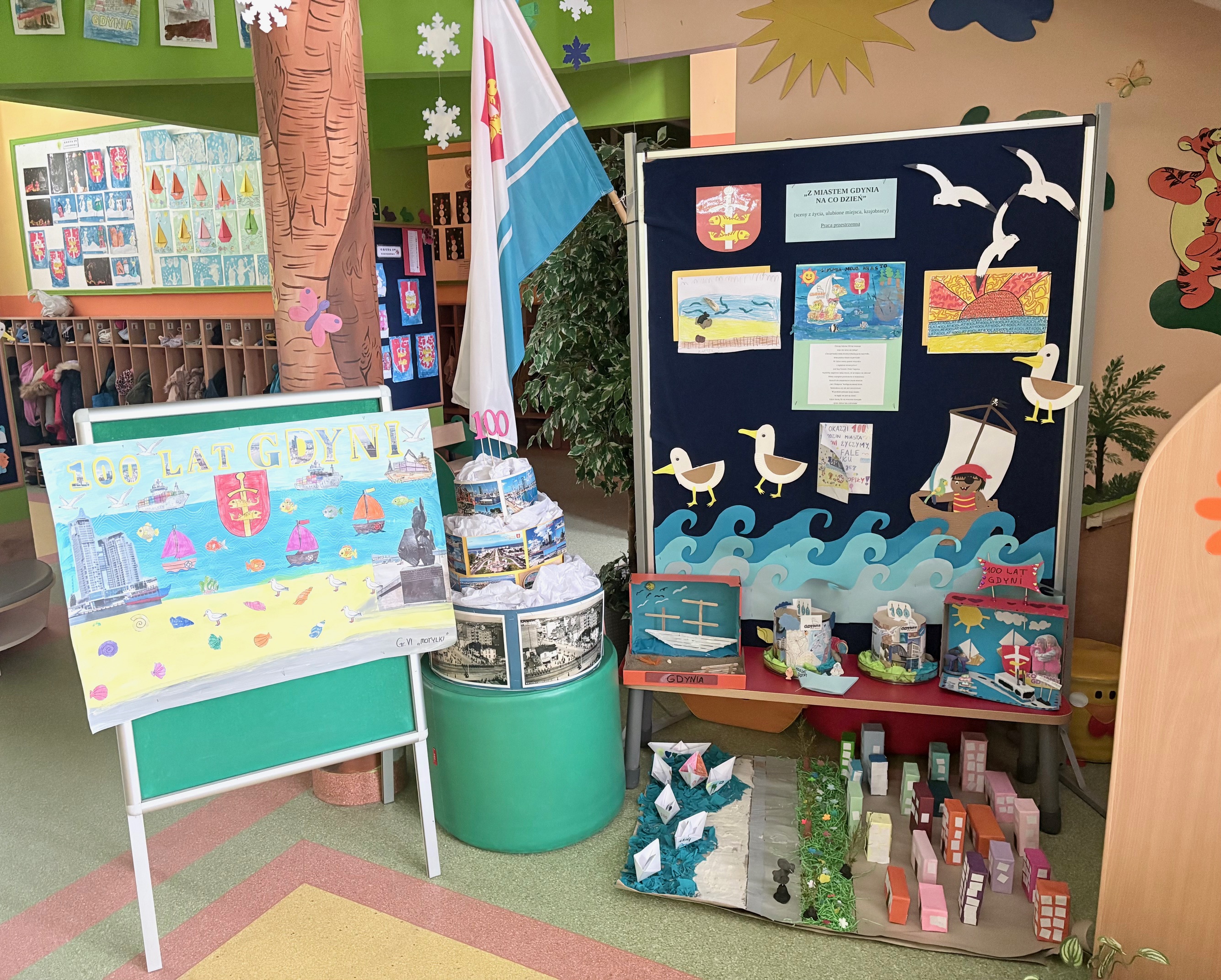 ZAANGAŻOWAŁY SIĘ W OBCHODY 100 URODZIN GDYNI W NASZYM PRZEDSZKOLU. DZIECI Z KAŻDEJ GRUPY WYKONAŁY PIĘKNE PRACE PLASTYCZNE