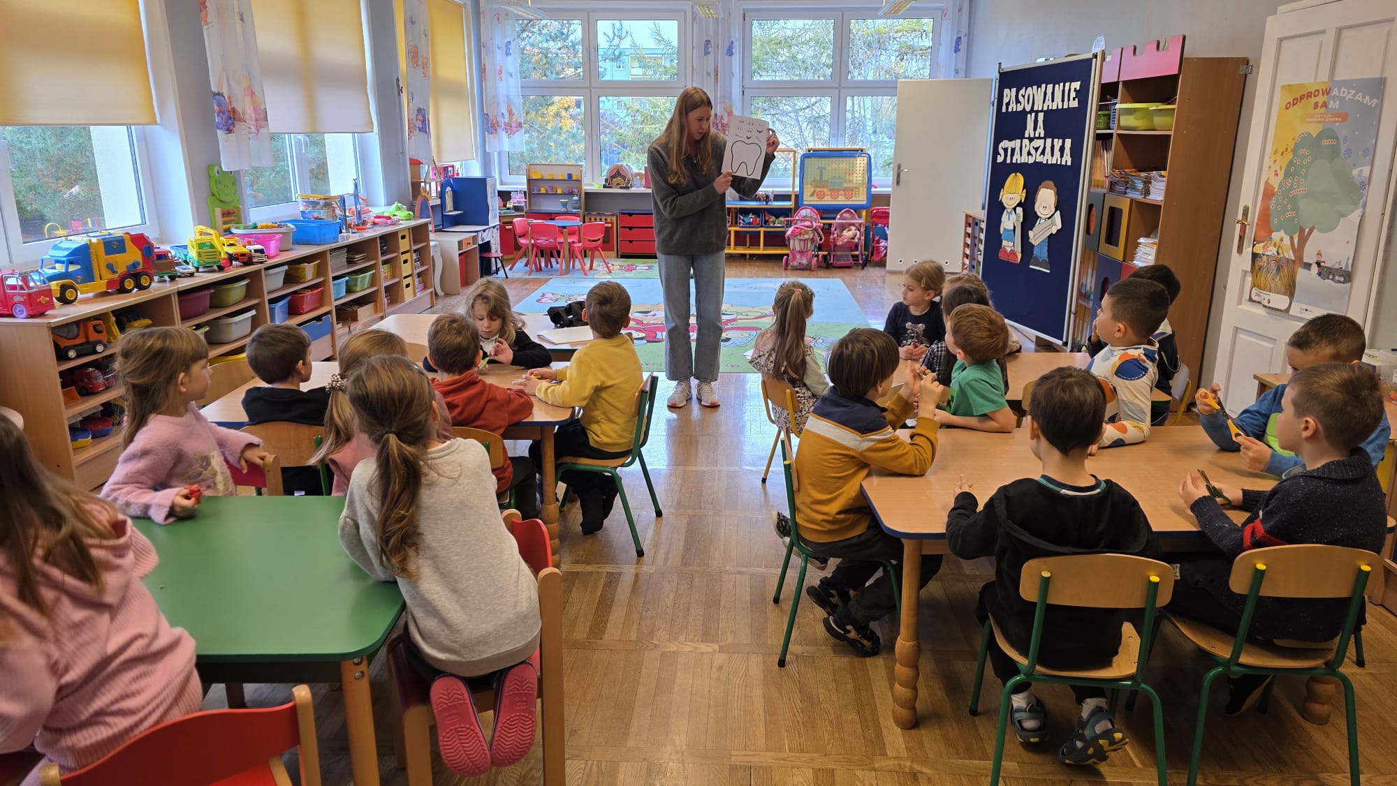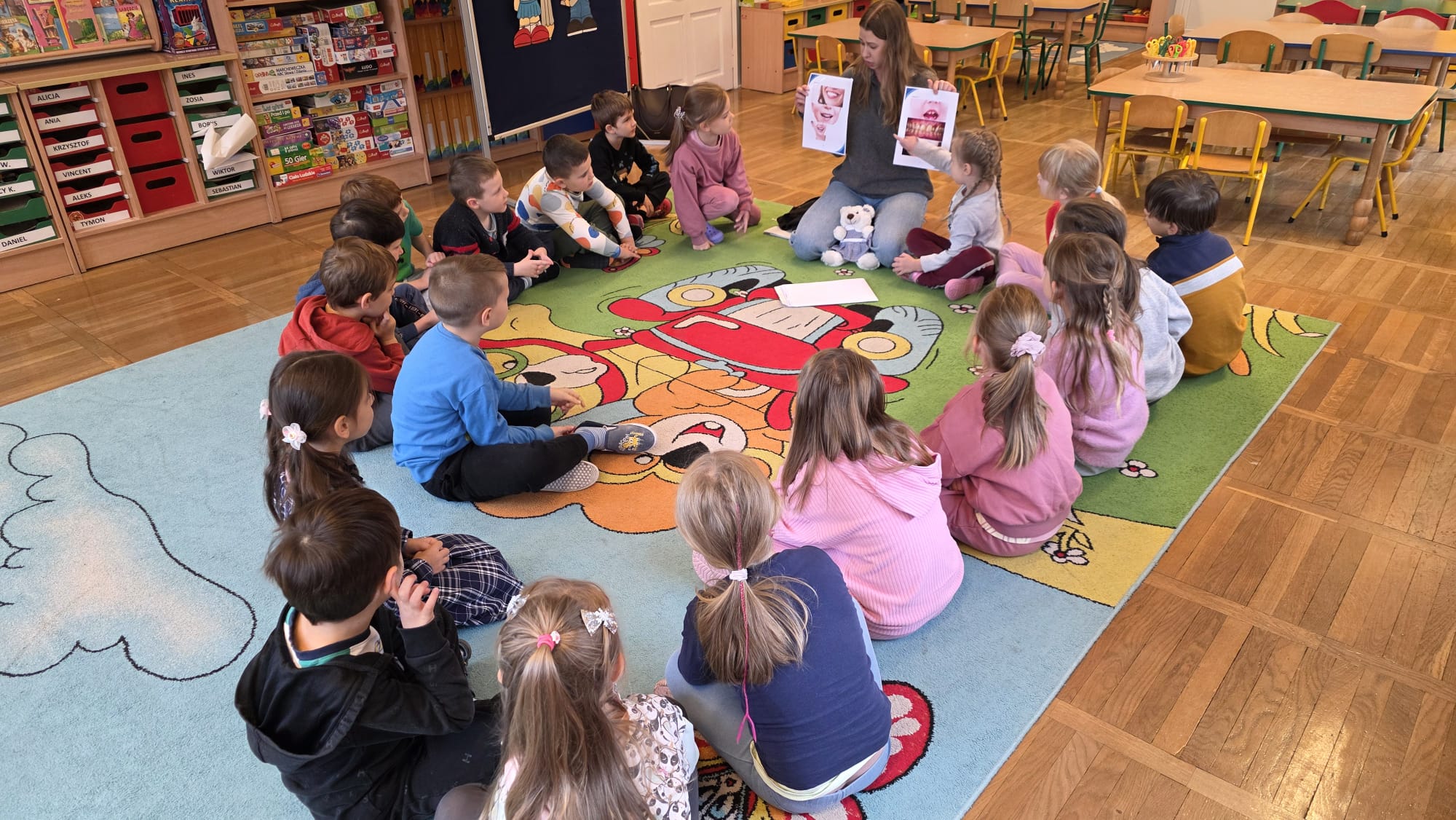 PRZEDSZKOLAKI PODCZAS SPOTKAŃ Z MISIEM VELVETUSIEM OMAWIAJĄ TEMATY ZWIĄZANE Z HIGIENĄ OSOBISTĄ, KTÓRYCH CELEM JEST